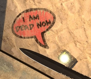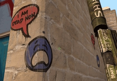 "I AM DEAD NOW"The most common Counter-Strike graffiti craft commonly used after neutralizing an enemy to taunt them. This spray can also be used with other sprays to create true graffiti crafts or alongside other entities. INSTRUCTIONS