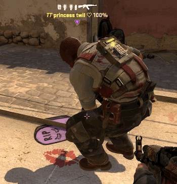 DRILLBIT GRAVEThis craft was created by a widow who witnessed her partner die during a tense clutch on de_mirage. They sprayed a grave and then a kiss beside it to memorialize Mr. Drillbit. INSTRUCTIONS